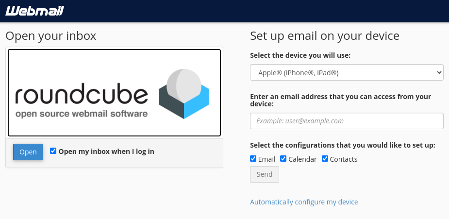 Use other third-party clients by using the Mail Client Manual Settings. To automatically open your third-party client when you log in to Webmail, perform the following steps: