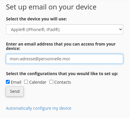 Paramètres pour une application de courriel sur votre mobile ou ordinateur