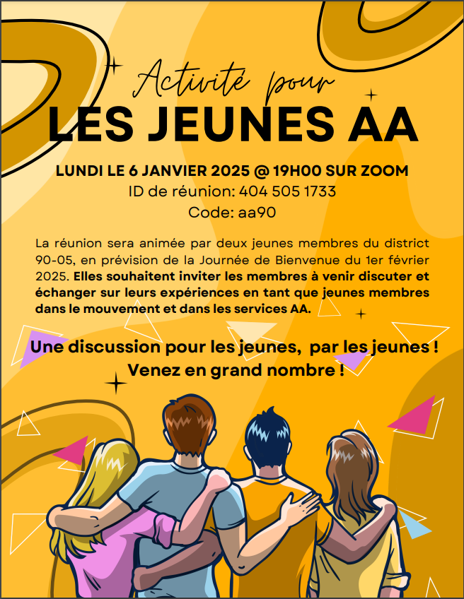 connecter et inspirer les jeunes dans les service Alcooliques Anonymes.