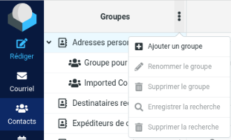 ![]() | « Ajouter un Groupe » (noter que c’est le même menu pour supprimer le groupe) et nommer un groupe d’envoi. |